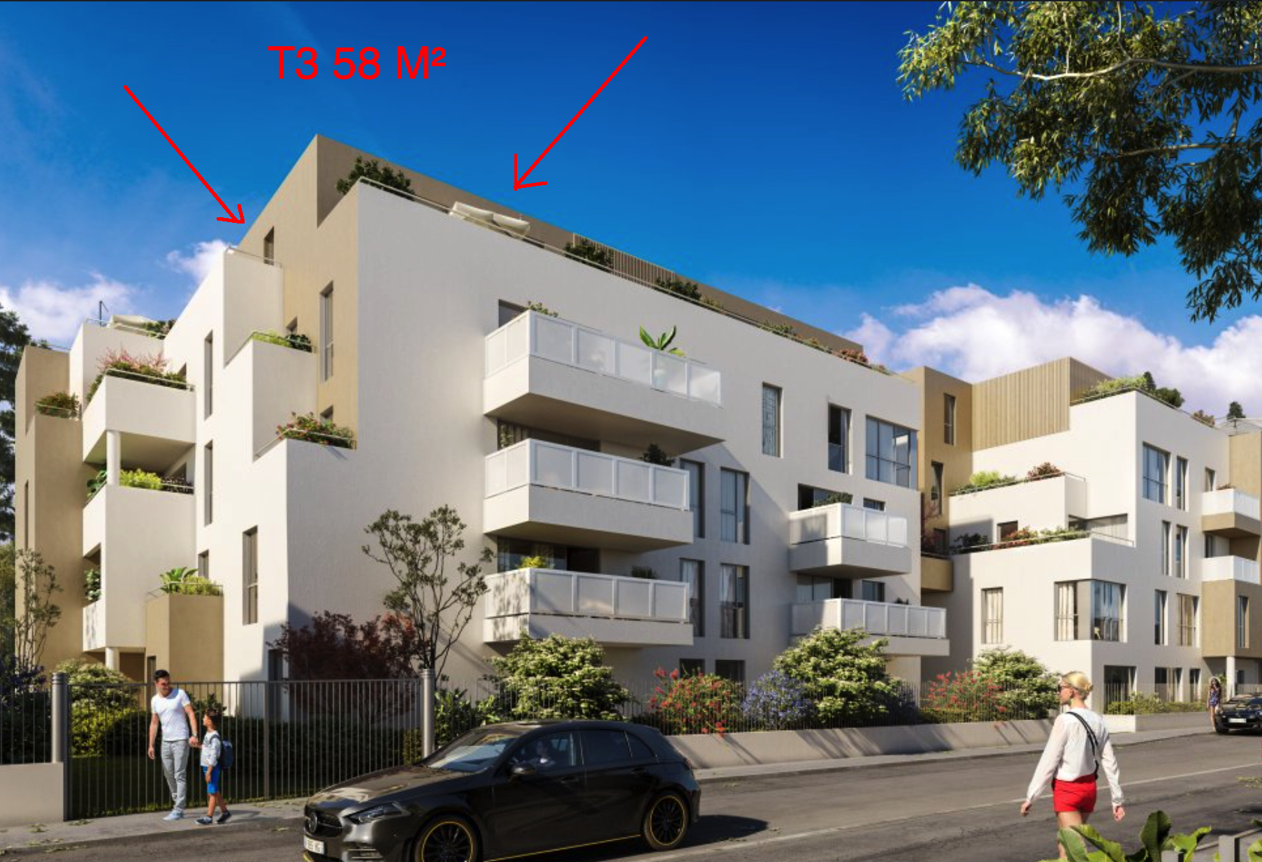 Superbe appartement T3 de 63 m² au 6ème et dernier étage sans vis à vis....398 500 €*