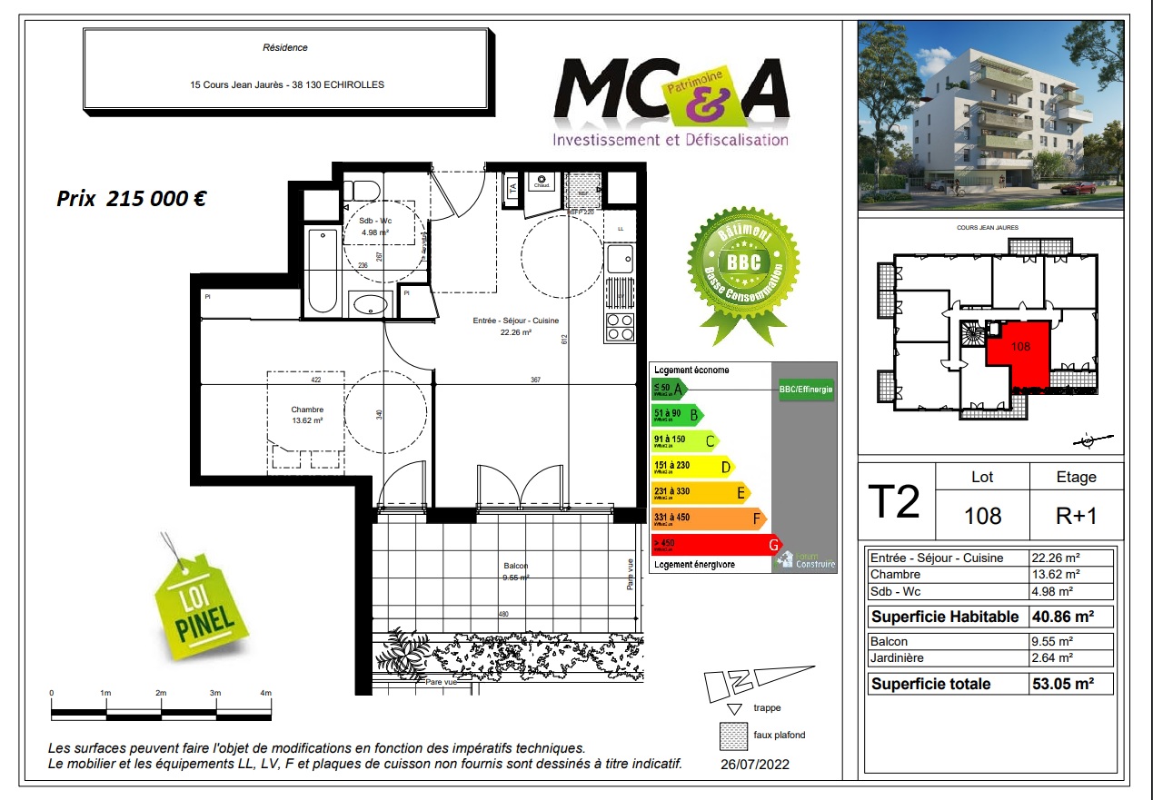 Annonce parue le : 07-08-2023beau 2 pieces terrasse IDEAL PINEL - le coin des annonces immobilières sur MonLogementNeuf.com