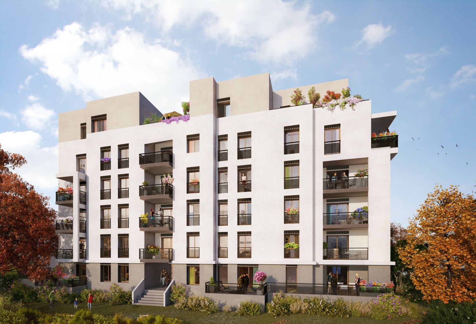 - Avec balcons, loggias, terrasses et jardin commun